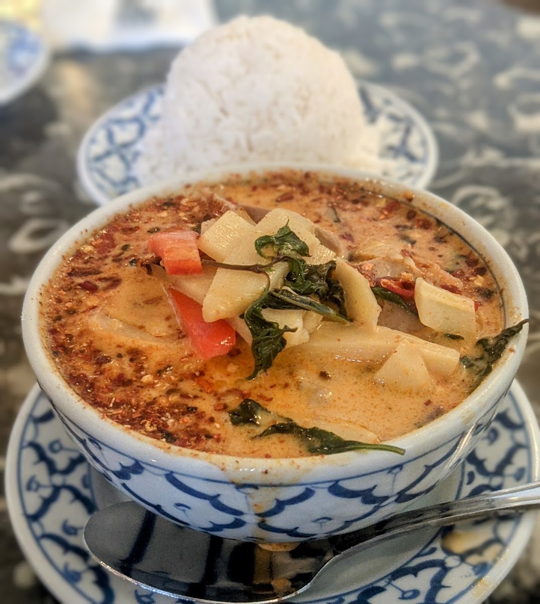 The menu reads like a greatest-hits list of Thai cuisine, but each dish feels carefully handled rather than rushed. Pad Thai arrives with rice noodles that still have structure, not the soggy version you find at rushed takeout counters. The balance of tamarind, palm sugar, and fish sauce hits that sweet-sour point that Thai culinary schools often emphasize. According to culinary research shared by institutions like the Thai Trade Center USA, proper balance of these four core flavors is what defines authentic Thai cooking, and that principle clearly shows up here. Curries are another highlight, especially the green curry, where coconut milk is rich but never greasy, and the spice builds gradually instead of overwhelming the palate.